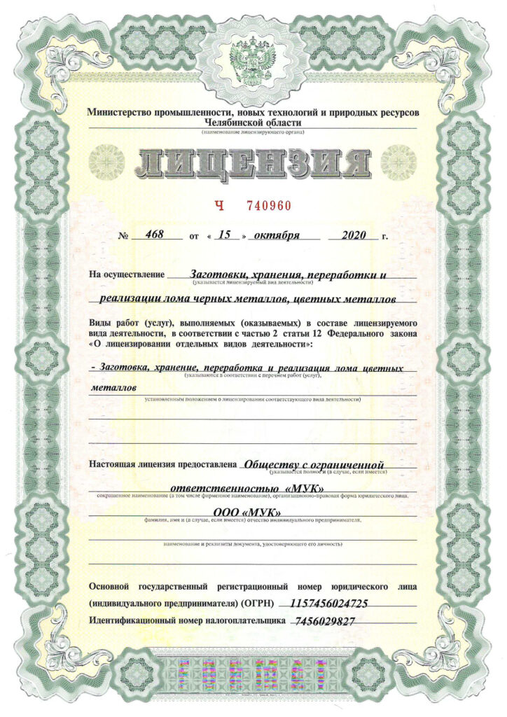 Наша компания находится в реестре лицензий Министерства промышленности Челябинской области.