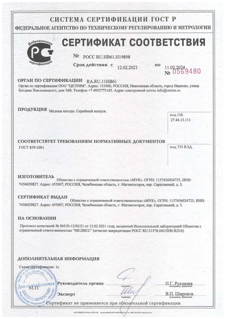 Продукция ООО МУК сертифицирована по международным стандартам качества.